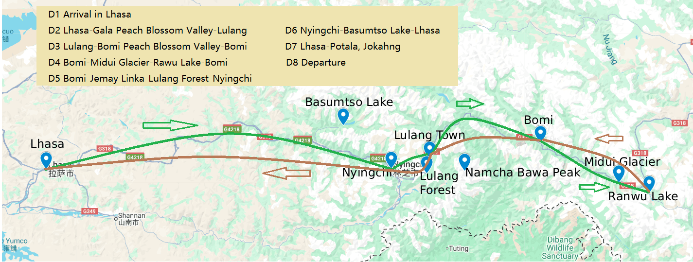 Lhasa – Lulang – Bomi – Nyingchi – Lhasa